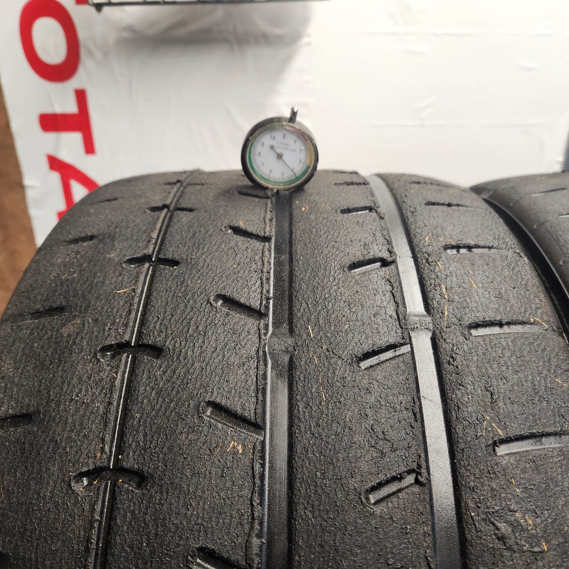 Loads of life remaining and huge saving on new. New tread depth is 5mm.