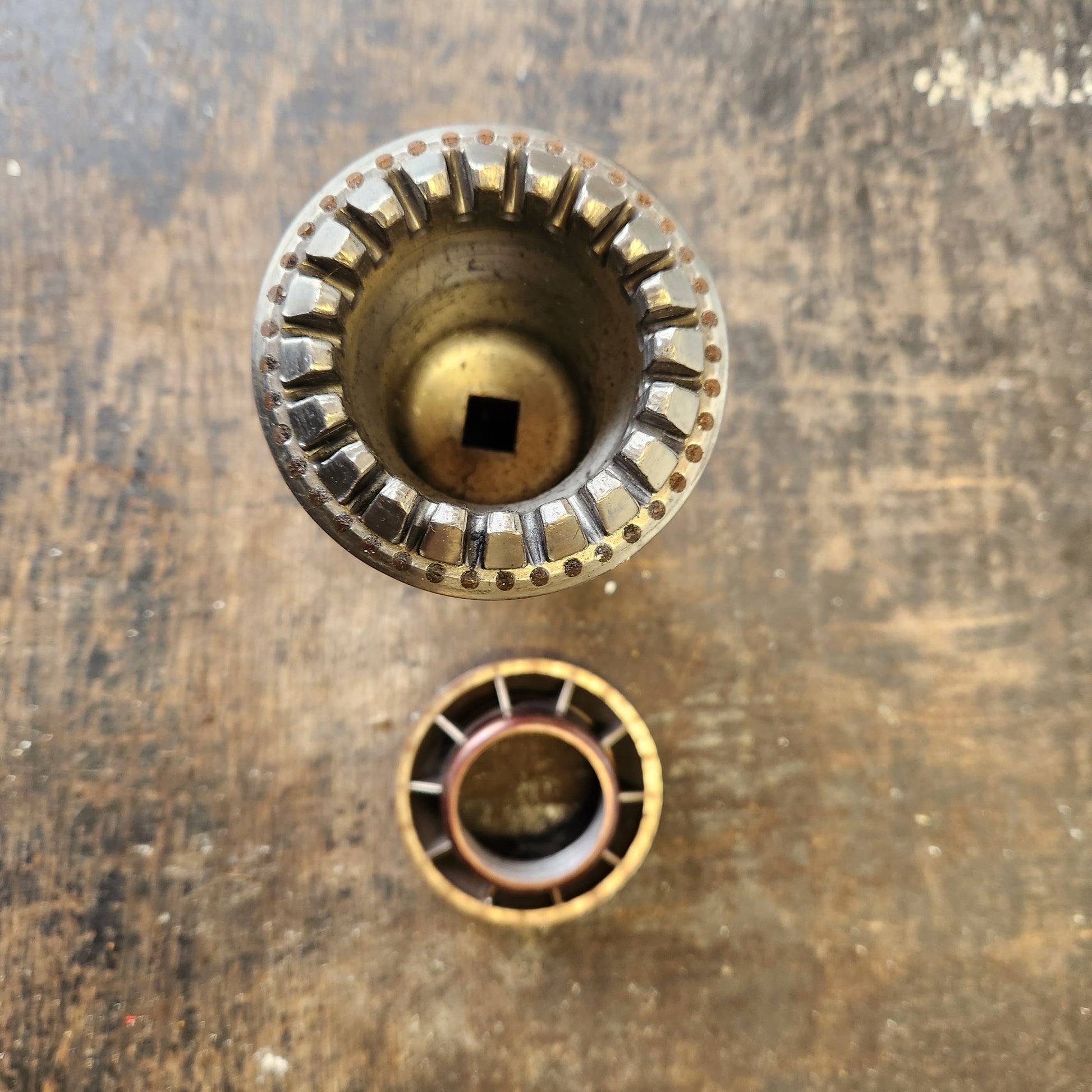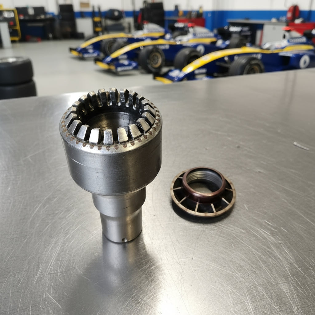 Renault F1 Wheel Nut and Socket. Used in 2025 season for testing on either Fernando Alonso's or Giancarlo Fisichellas car in 2005.