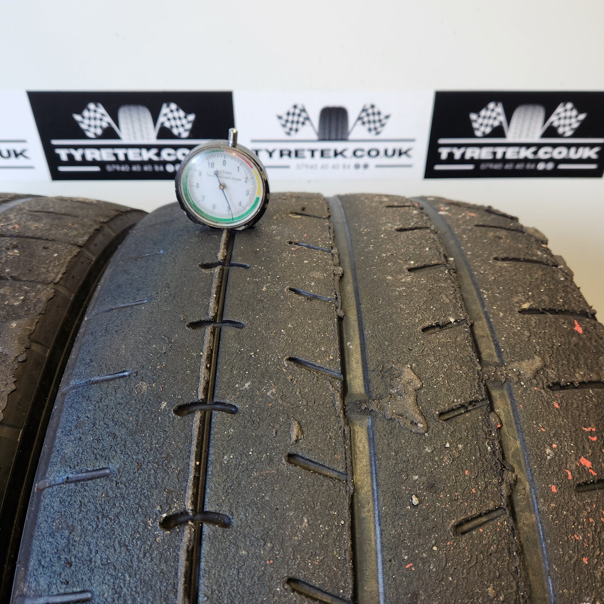 See photos for tread depths. E-Marked for road use.